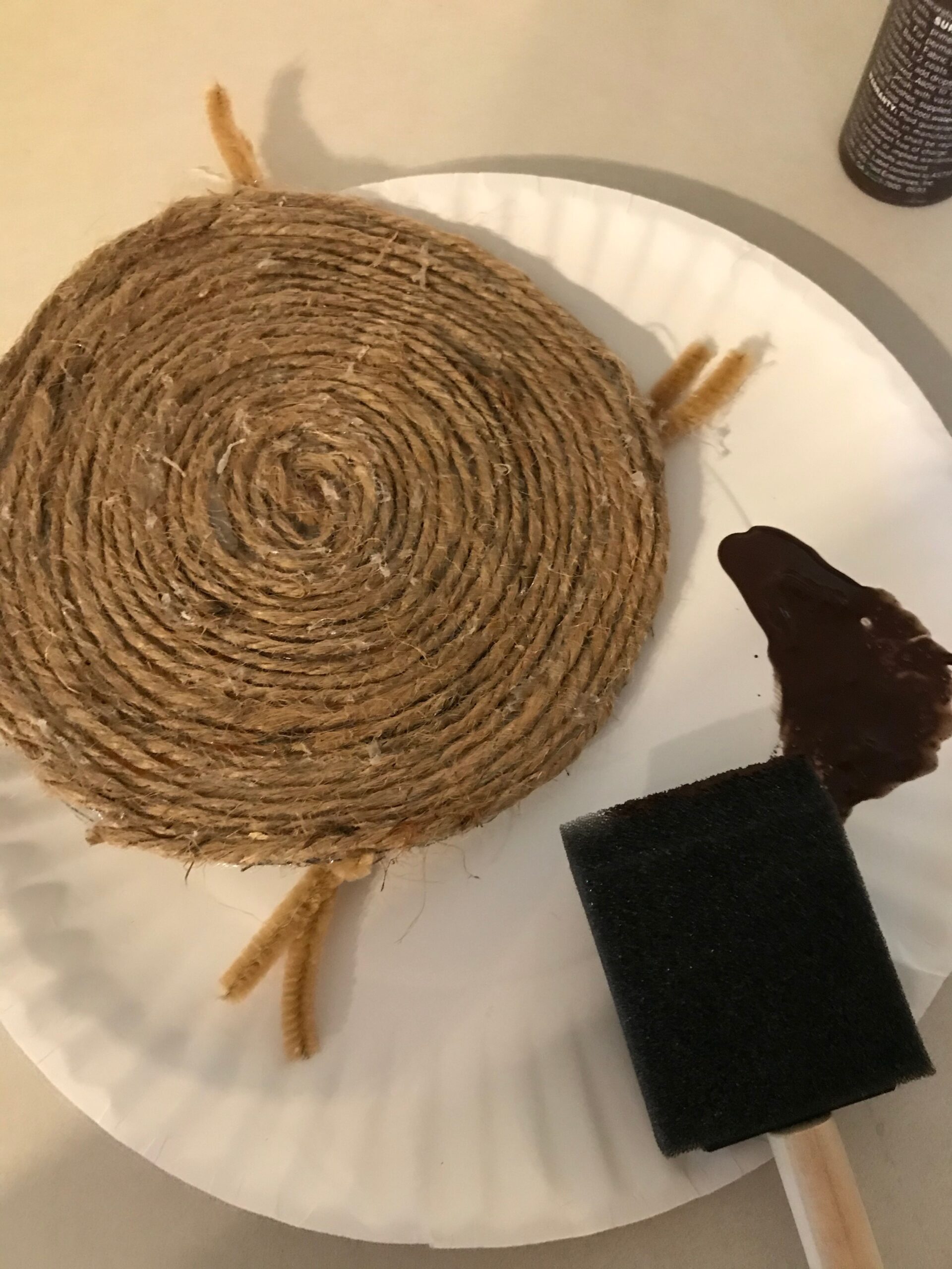 Paint the jute dark brown with a sponge brush. It will soak up a lot of paint.