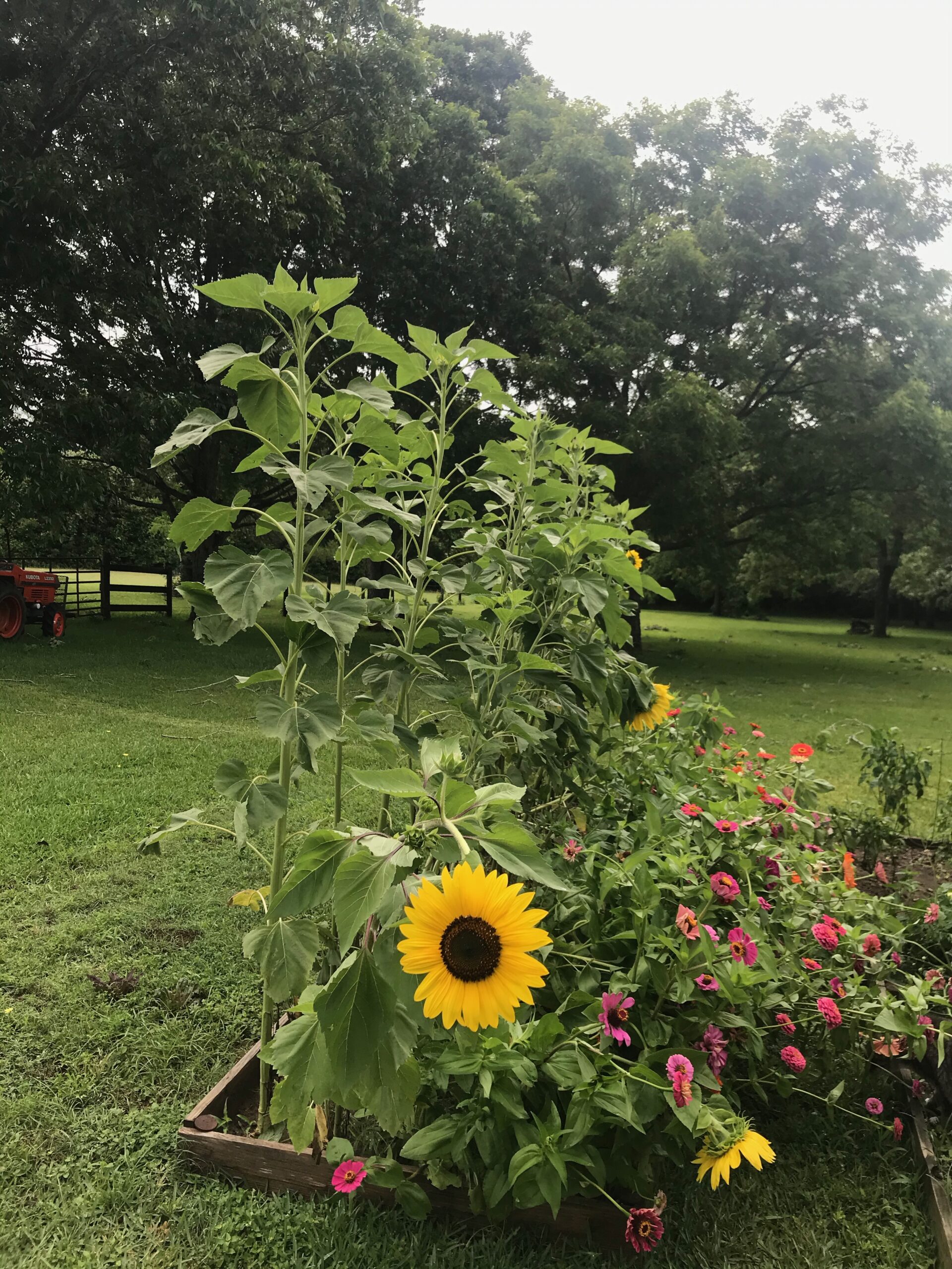 My sunflowers are 8 feet tall with long spindly stems. Even on the worst days, they face the East, stand firm, and wait patiently for the sun to shine again.