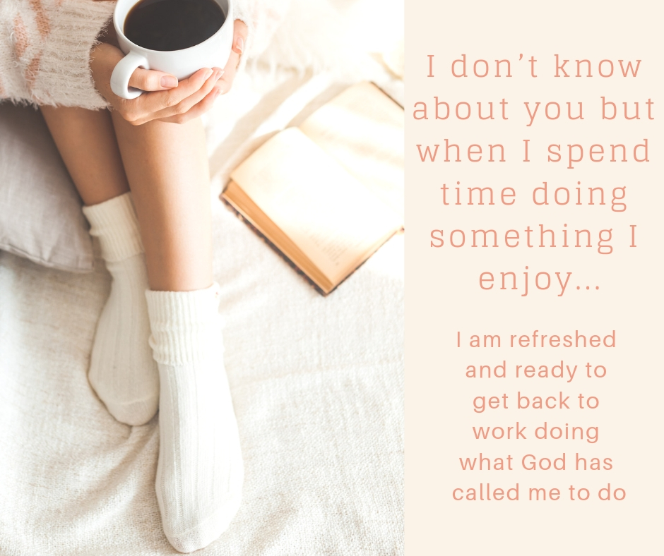 I don’t know about you but when I spend time doing something I enjoy like reading, painting, writing, journaling or having coffee with a friend or loved one, I am refreshed and ready to get back to work doing what God has called me to do and to pour that joy out on others.
