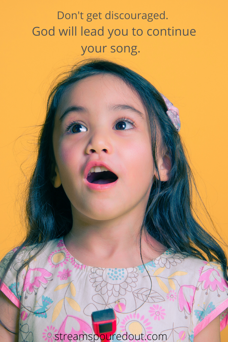 Sing to your Creator, don’t get discouraged when He says rest. He has a plan even when there seems to be no music. God, Himself, will count out the timing and lead you to continue your song.